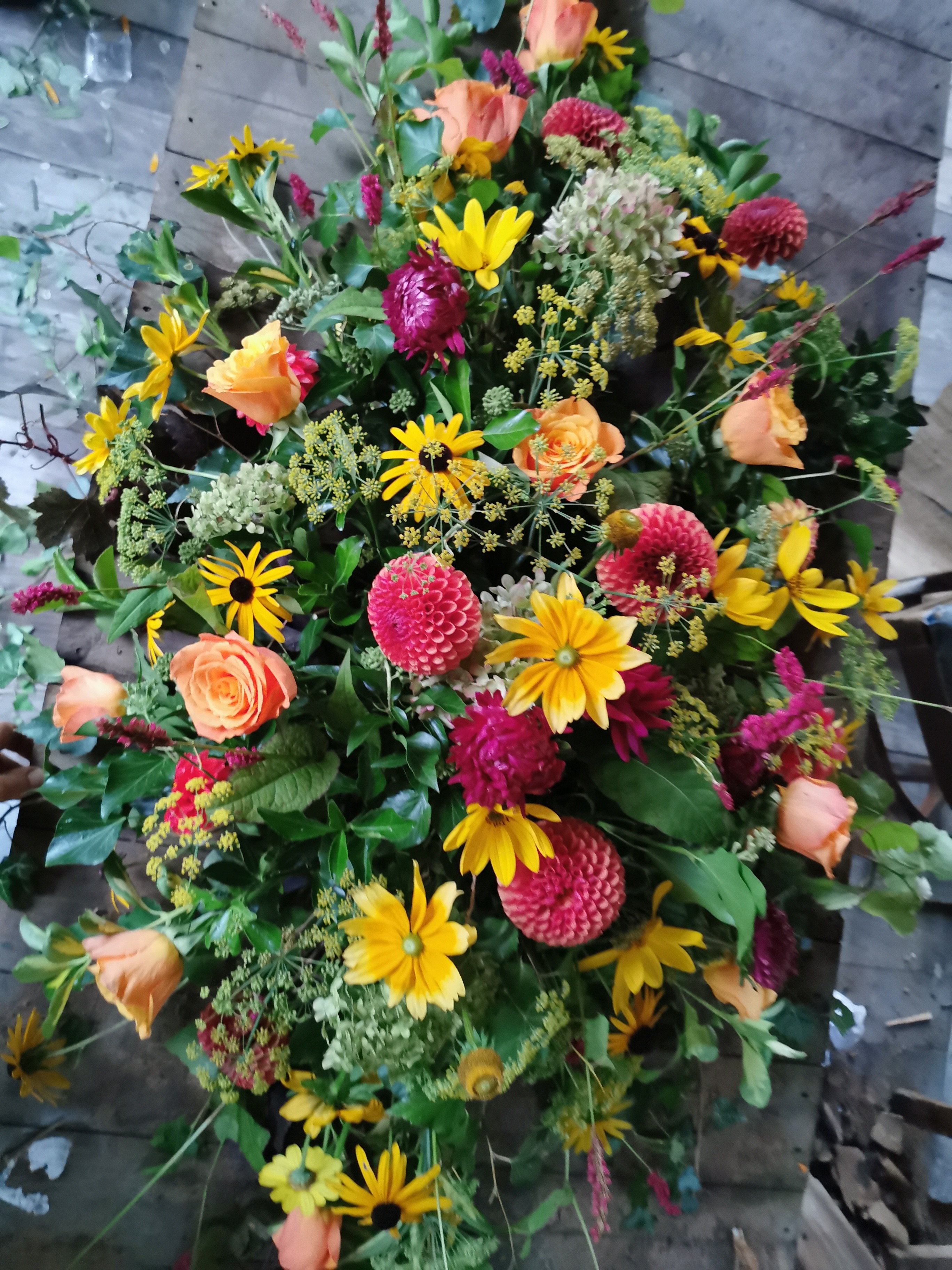 Each client’s unique request is met with personalized sympathy arrangements, carefully crafted using only seasonal blooms. My commitment to sustainability shines through in every design, as I exclusively use biodegradable materials.
